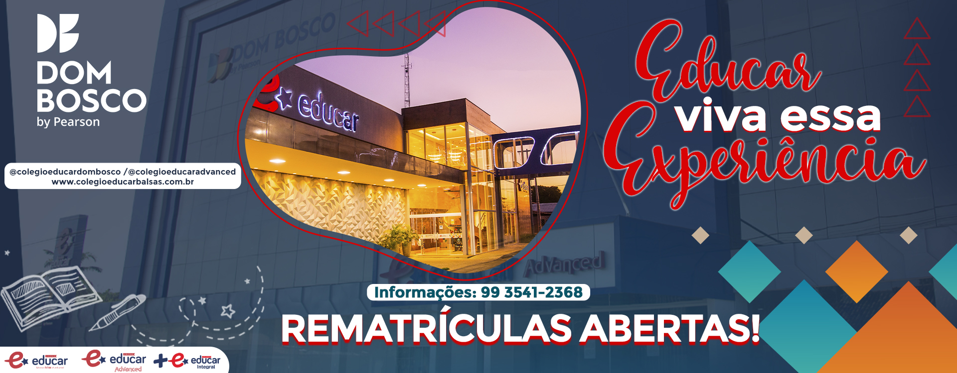 No ano de 2017 ampliamos nossos horizontes e fomos além, afim de oferecer aos nossos alunos o que há de mais inovador na educação. A escola Sossego da Mamãe passou a se chamar Colégio Educar, dando início a um novo ciclo, incluindo a parceria exclusiva com um dos melhores sistemas de ensino do mundo, Dom Bosco.